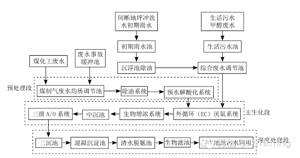 兰炭与焦炭都是原煤在一定温度下干馏后得到的产物,因此所产生的废水主要污染物成分有很多相似之处,故目前对兰炭废水的处理,主要借鉴焦化废水的处理方法。