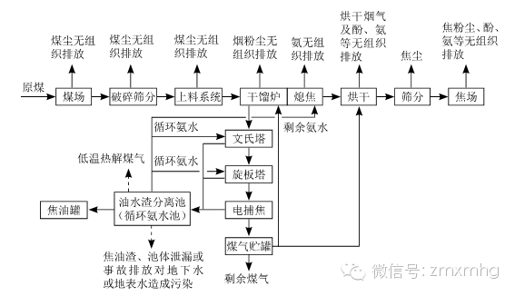 图1 现有兰炭装置生产工艺流程及污染因素分析