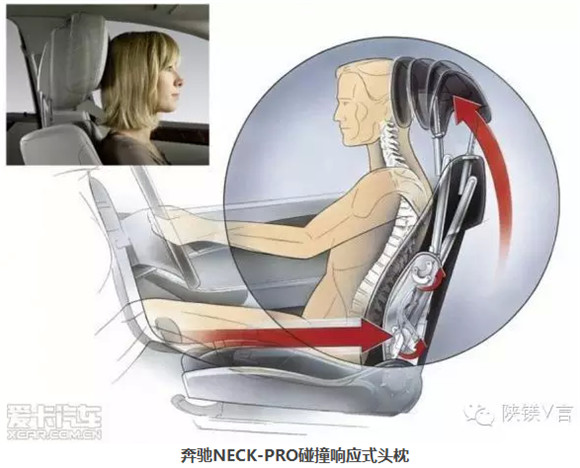 日益严格的测试标准,也迫使汽车座椅制造商们不断发展新的安全技术,主动式安全头枕就是其中的一种。以奔驰NECK-PRO主动式安全头枕为例,当车辆被追尾时,头枕会瞬间自动向前移动40mm,并同时向上移动30mm,这样就可以减少头部与头枕之间的空隙,降低受伤的风险。