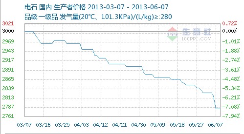 电石市场价格继续下行。据生意社监测的数据显示国内电石周初主流均价2828.33元/吨,周末主流均价2783.33元/吨,价格下跌幅度为1.59%,环比下跌3.08%,同比下跌14.58%。