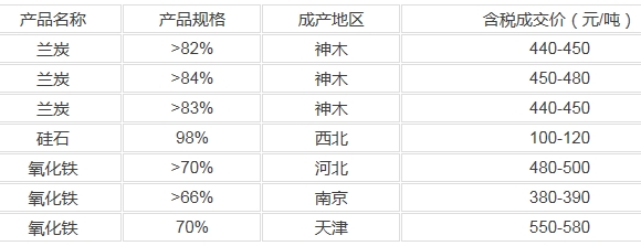 硅铁生产力不足,原料方面的需要求也相对偏弱,前期市场硅铁原料方面的生产和成交价格都相对平稳,企业保持订单排产,成交价格相对坚挺,目前氧化铁和硅石、兰炭和硅铁原料合金的成交价格相对平稳与节前趋势,其中硅石西北地区的成交价格在100-120元/吨,兰炭主流价格依旧在430-460元/吨,氧化铁66主流价格在380-390元/吨。