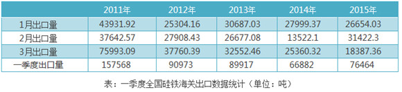 海关数据显示:一季度硅铁出口7.6万吨,同比增加14%;3月份出口量,较2月份有明显的下滑,通过海关出口的硅铁数量略显疲态。