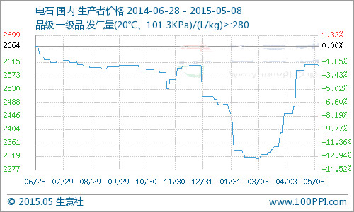 产品:近期电石价格止涨维稳,而后下调,前期电石价格上调,自3月初开始上调至4月中旬涨至高点,4月下旬价格维稳,5月初开始下调,至中旬价格维稳;