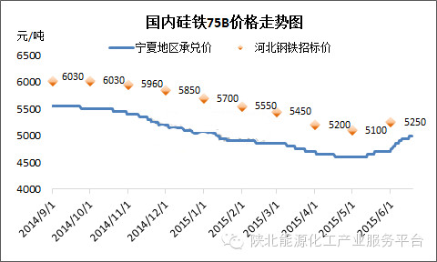 硅铁价格在下行10个月后,5月下旬终于迎来涨势。主要由于市场开工率低,企业库存逐渐消耗后,现货紧张局面凸显。企业报价开始积极上调,宁夏中卫地区停炉普遍,当地硅铁企业率先调涨,随后青海、内蒙古、陕西等地报价逐渐上调。再加上6月份钢厂招标价至少上调了150元/吨,基本确定市场涨势。