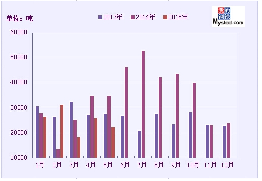 另,需求方面:钢材市场,据中钢协数据显示,6月上旬末,重点钢厂库存为1630.91万吨,比5月下旬增加47.97万吨,环比上升3.0%。需求依旧不振,但钢材产量仍在较高水平,导致钢厂库存仍处于高位。与2014年同期相比增加了177.97万吨,同比增幅12.25%。受供给压力影响,国内钢材价格仍处于下行通道,钢厂亏损幅度不断扩大,迫使更多的钢厂加入减产行列,届时,对于原材料需求必然减少,从而进一步打压原料采购价格。
