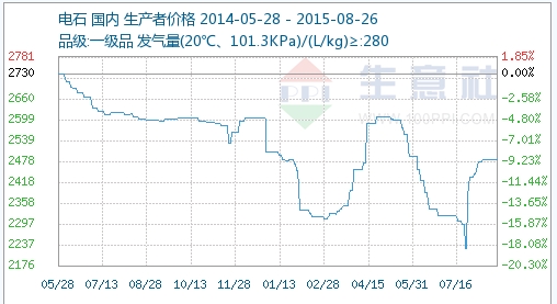 大宗榜数据显示,今日国内电石市场行情暂稳,主流生产厂家出厂报价2484元/吨,比去年同期下跌4.73%。