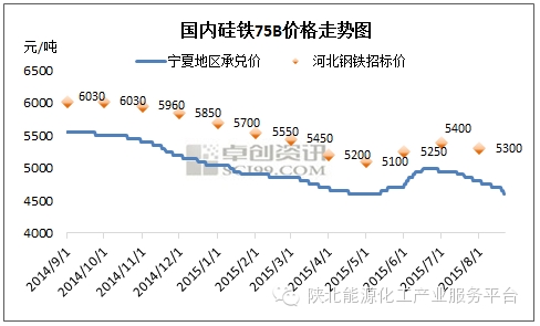 8月份,硅铁进入新一轮下跌通道。河钢招标价较上月下跌100元/吨,市场进一步承压,企业纷纷下调报价。并且因首都阅兵影响,北方地区部分钢厂将减产甚至停产,更加剧了企业的恐慌心理。而也有南方的贸易商表示之前供应的几家小型不锈钢厂近期破产,所以暂停硅铁贸易,可见硅铁需求量有减无增。