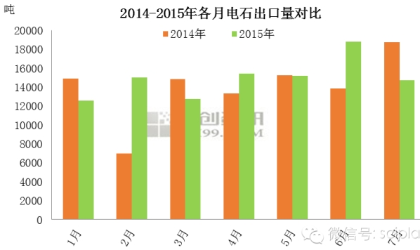 海关数据显示,如上图所示,2015年1-7月份电石总出口量为10.44万吨,虽每月出口数量略有差异,但平均每月的出口量也达到了1.5万吨左右。同时,上表可以看出,天津港是电石出口的最主要港口。8月12日天津港瑞海物流发生爆炸事故后,天津港暂停了各种作业。虽后期天津港恢复了部分作业,但作为危险品的电石出口一直未恢复正常。12日至今已20天左右时间,电石出口暂停后,部分出口贸易商暂停了电石采购,也就相当于在这20天里1万吨的电石需求缺失。