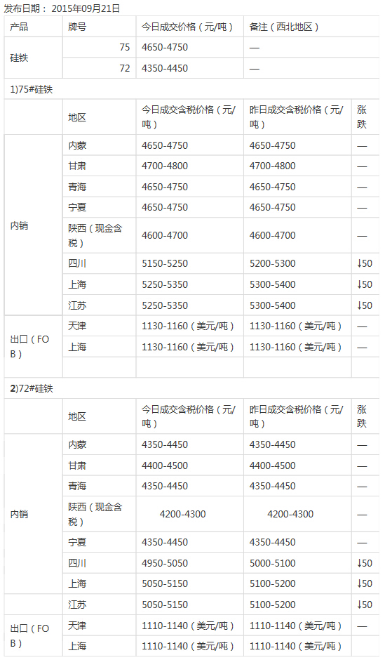 发布时间:2015-09-22 13:24:32 来源:中国硅铁网 查看次数: