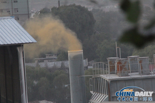 离企业一墙之隔的小区里,每户窗子都紧闭着。从山上向下看去,发现企业是建在小区周边。这也就是被小区住户不断地投诉的原因。