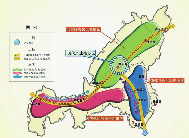 全力改善交通、水资源和生态环境等瓶颈制约,以榆林城区为中心,神木、靖边、绥德为副中心,县城及园区为辅的城镇体系为依托,科学规划,统筹工业化、信息化、城镇化、农业现代化发展,创新城镇发展新机制,以提升城市服务功能为目标,构建现代物流、金融服务、新兴服务、生活性服务和流通服务业五大区域功能中心,着力打造一批专业性强、特色突出、规模大、服务效率和水平较高的现代服务业发展载体,建设独具特色的魅力城市、开放创新的活力城市,建成陕西的第二中心和陕甘宁蒙区域性现代服务业基地。