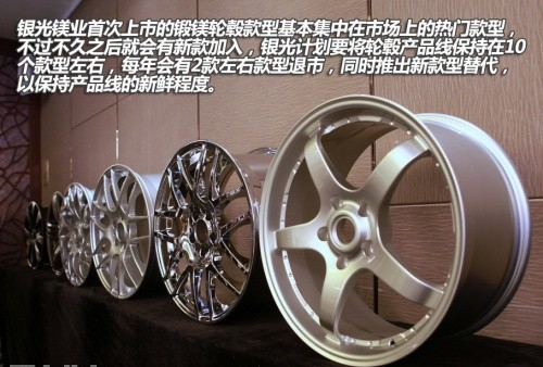 在公司的产品展示大厅,公司研发生产的合金汽车轮毂引人注目。许月旺副总经理介绍说,由于合金汽车轮毂重量轻,比通用的铝合金汽车轮毂节能百分之十。现在银光业的汽车已经换上了合金轮毂。公司生产的合金汽车轮毂已经通过了美国通用公司、福特公司的各项质量检测和路试,现在已经达成了批量生产和批量使用的意向。销售合金汽车轮毂比过去单纯地销售锭每吨可以多挣8万元。