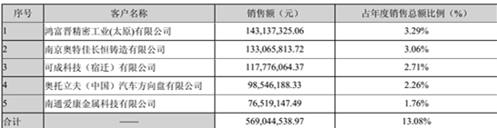 前五名客户合计销售金额占年度销售总额比例(%) 13.08%