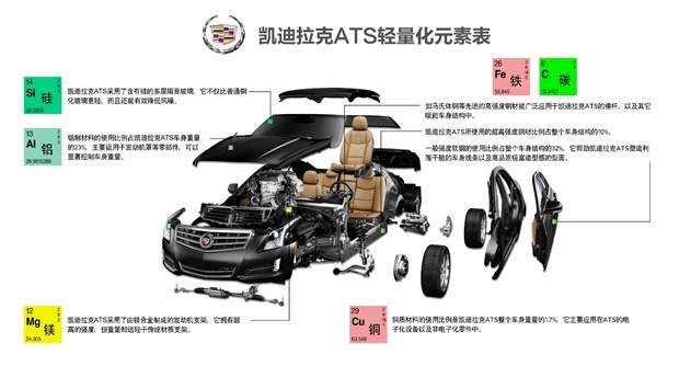 敏捷之于凯迪拉克ATS便犹如一位武林高手的独门绝技,虽然隐藏在外表之下,但却有着至关重要的作用。凯迪拉克ATS打造敏捷表现的第一步,就是减重。工程研发团队在设计之初便为ATS订立了严格的重量目标,在每一个环节都进行严格的重量管理,对于重量的克扣甚至精确到“克”。在材料上ATS广泛采用了多用于航空工业的铝、镁等混合金属材料,全铝前副车架、铝合金发动机盖比传统钢制部件减重达50%,镁合金发动机支架支撑着整个发动机但重量却仅有1公斤。在制造工艺上,凯迪拉克ATS同样“斤斤计较”,将每一个零部件的效率都发挥到极致,并在强度允许的情况下对非结构性部件进行合理减重,以ATS扬声器为例:此次Bose配备的25.5厘米Nd低频扬声器采用全新的钕磁铁科技,拥有完美音效同时,重量仅为同等铁素磁铁扬声器的四分之一。最终,通过一系列“减负”措施,ATS的重量控制在了1,550千克,就成了同级最佳轻量化车型。