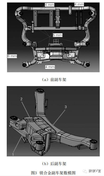 轻量化后的镁合金前、后副车架质量分别为22.98kg和3.546kg,与原钢件相比分别减重52.42%和64.04%。