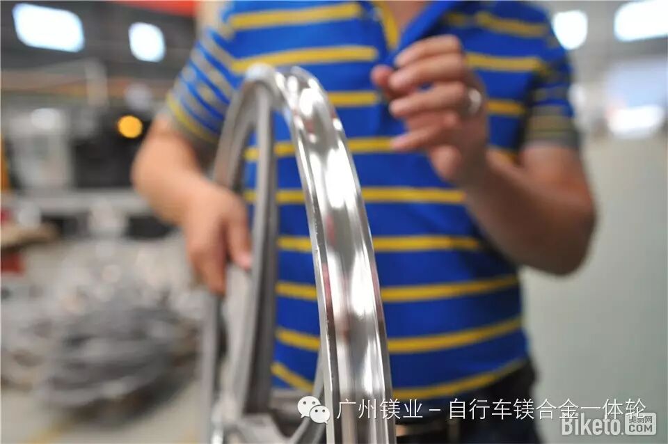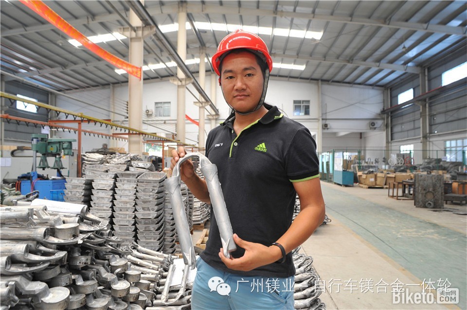 做镁合金轮圈,广镁目前的开发已经到了第4个批次。跟汽车一样,自行车的轻量化一定是一条必造的趋势,不可能越造越重。广镁现在研发的镁圈重量能达到270g,而铝圈重量目前最轻只能是360g,相比之下,镁合金轮圈能轻90克。不过这种产品目前还在测试阶段。