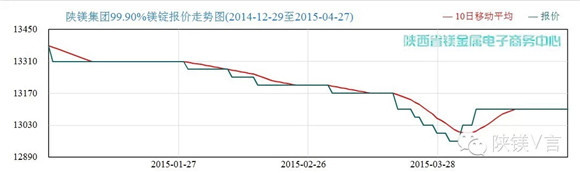 2015.01-2015.04月陕镁集团99.9%原镁价格走势