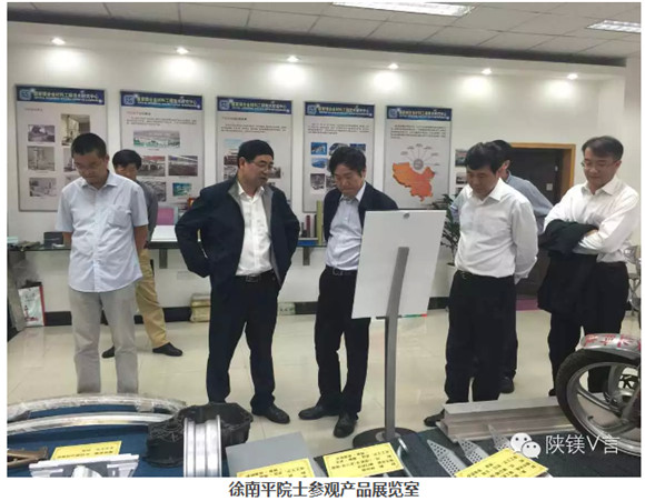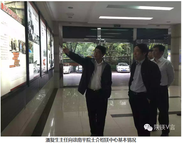 潘复生教授结合展板宣传向徐南平院士简述了国家镁中心的发展历程、组织结构、研发队伍、研究领域、基地建设、国际合作交流、重要研究成果等情况,徐南平院士对国家镁中心针对国家战略需求展开的富有成效的研究工作表示高度赞赏,希望国家镁中心与江苏省产业技术研究院建立实质合作关系,共同推进镁合金材料的规模化产业应用。徐南平院士还在潘复生教授的陪同下参观了产品展览室,详细了解镁合金产品开发与工程应用情况,并提出许多宝贵的意见和建议。