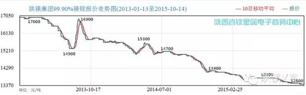 在经过2008年前后的大起大落后,2010-2013年国内市场呈区间大幅震荡态势,波动区间为1500-1900元/吨。不过,自2014年开始,镁价一路下滑,最低价约12500元/吨,形势不容乐观。